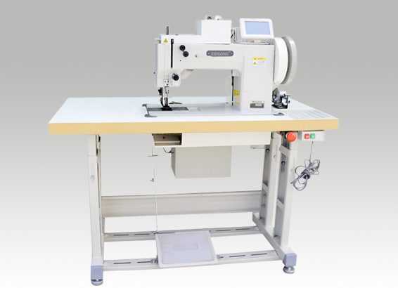此壓線機采用志強公司自主研發操作軟件,通過針桿旋轉技術來實現不同花樣,包括T字型,X型,口字型等298種裝飾花樣。經過家具制造商改良,在對沙發和汽車座套的轉角進行壓明線作業時也能確保縫紉速度和漂亮的線跡。本機采用杜克普(DURKOPPADLER)204款超大半回轉型擺梭,增加容線量,減少換線次數,提高工作效率。能使用極粗線(1500dx3,V415,V462,T-500或1.4mm空心線,扁線或裝飾線),是高檔沙發和汽車座套生產廠家不可或缺的花樣裝飾縫紉設備。超強的垂直機針穿透力、特殊改型壓腳及跡調節裝置,確保在縫紉交叉接縫時保持統一,避免拋線,浮線,縮針距,跳針和線疙瘩等瑕疵,使用極粗線對沙發套或汽車坐套進行壓明線作業時,其優勢更加明顯。
