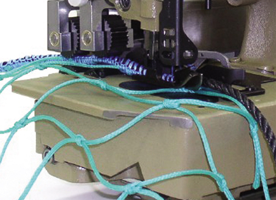 本機(jī)對于繩索和網(wǎng)的導(dǎo)入均提供了專門的零件,便于操作者將繩索和網(wǎng)片連接起來,不會出現(xiàn)跳針現(xiàn)象。