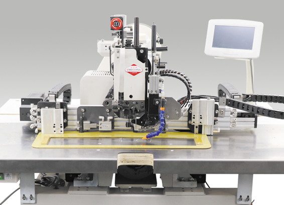 本機設計結構嚴謹、傳動可靠,通過隨機編程器能進行花樣圖形、針數、線跡長度等各種參數的設定。花樣的輸入、儲存、修改、調用便捷,并可以通過USB接口輸入預先編好程序的各種圖形進行縫紉加工。是一款專門用于縫制皮革、吊裝帶等厚料物品的大規模電子花樣機。